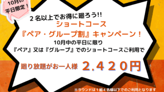 イベント平日限定!夏のショートコース廻り放題キャンペーン! 平日限定 夏のショートコース廻り放題キャンペーン 好評につき期間延長! 期間:2025年7月22日~2025年8月29日まで 9月30日まで! ◇・◆・◇・◆・◇・◆・◇ 廻り放題 通常 3,960円(会員は3,300円)が... 2025.07.30イベント